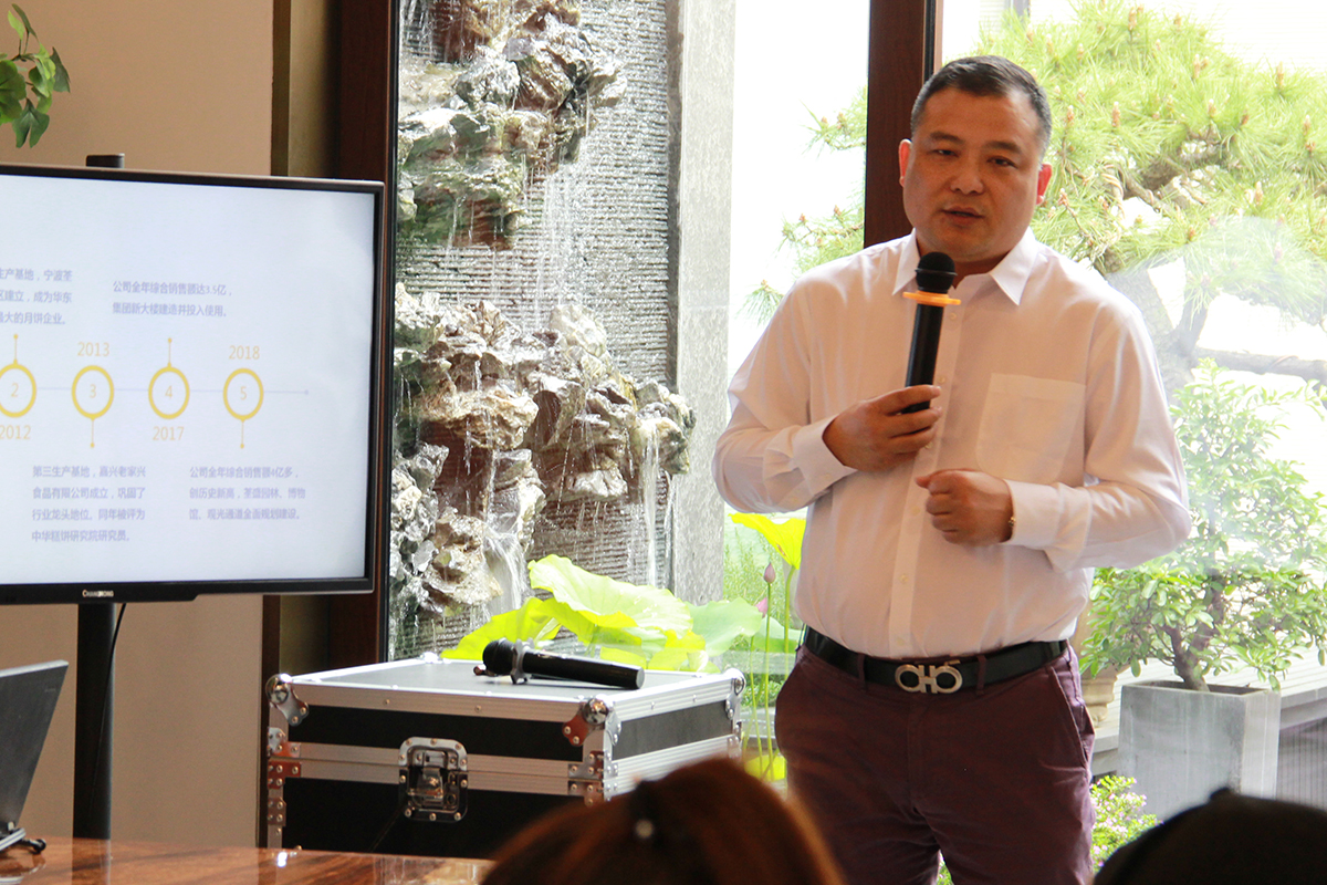 荃盛技術總監陳剛在會上詳細介紹了2019年荃盛粽子新品,從選料上乘、工藝創新、研發團隊等方面闡述了今年荃盛粽子品相制作較往年有了非常高的突破。今年荃盛引進來自于臺灣、香港、嘉興等地的制粽大師,為荃盛粽子品類研發、創新、發展得到了巨大的幫助和提升。