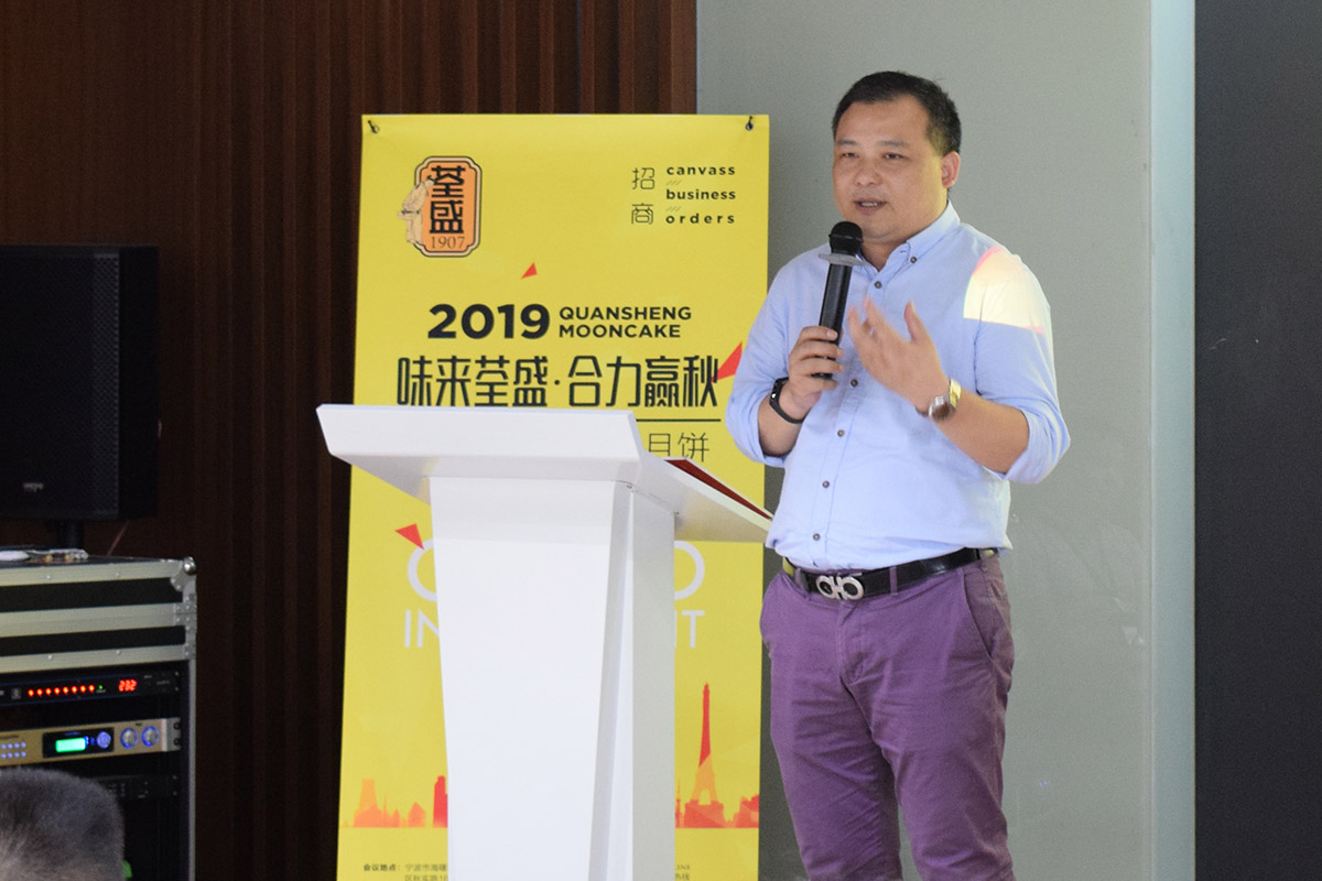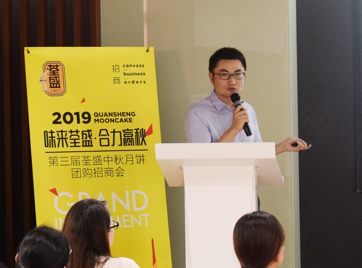 荃盛營銷總監楊剛首先通過荃盛集團近20年公司成長發展情況,并就未來的消費趨勢對荃盛的發展前景做了展望和要求。荃盛集團至今已成為了600+家中國高端品牌客戶月餅的共同選擇,品牌強大的背后,是每位客戶朋友一個個訂單的信任、寬容和幫助。