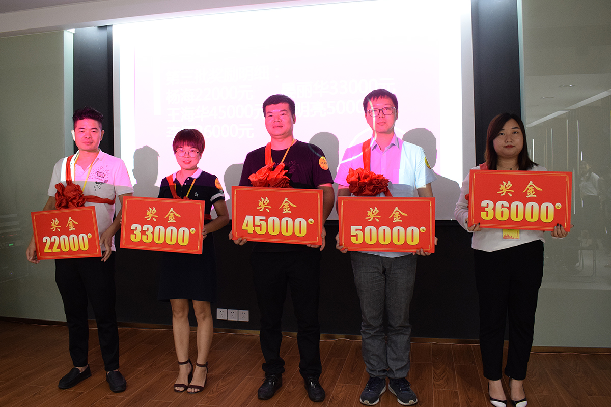 會議開始前,荃盛團購經理郭足梅總結了2019年端午團購銷售情況,荃盛團購經理羅亞國給表現良好的團購客戶進行表彰和頒布額外的獎金。