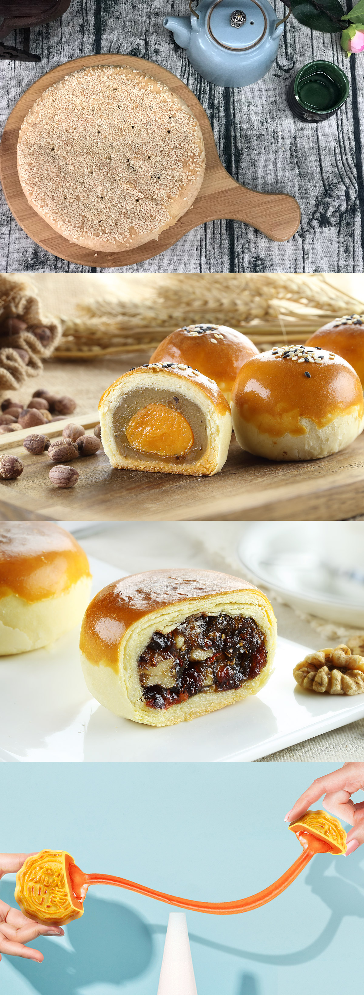 會上,團購客戶試吃了荃盛黑松露蓮蓉蛋黃酥,酥皮金頂五仁酥,五味蛋黃肉松Q心餅,法式藍莓乳酪月,奶黃流心月餅,酥皮五仁月餅等新月餅,還有更多口味在等著大家。