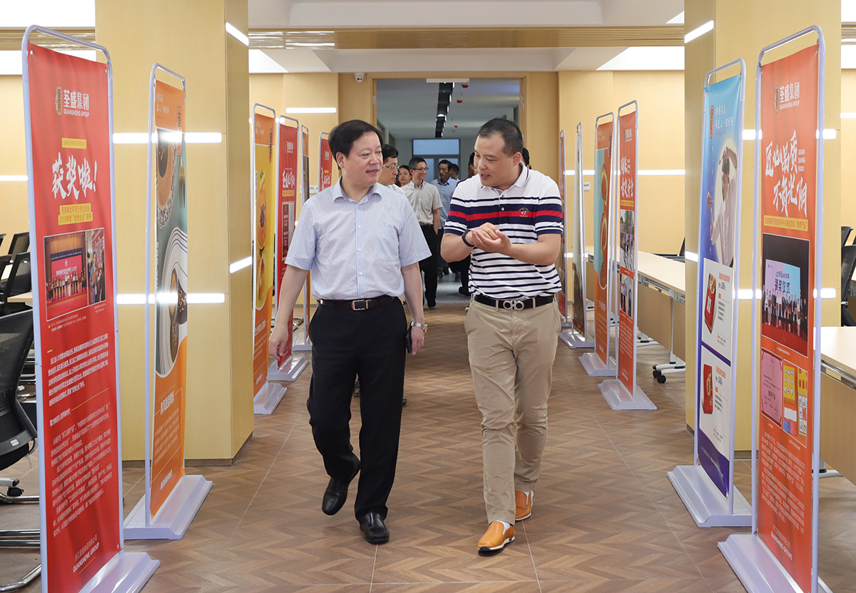 陳仲朝常務副市長在荃盛集團董事長戴東堅的陪同下,考察了“荃盛探夢工廠”,聽取了荃盛集團發展歷程及規劃。