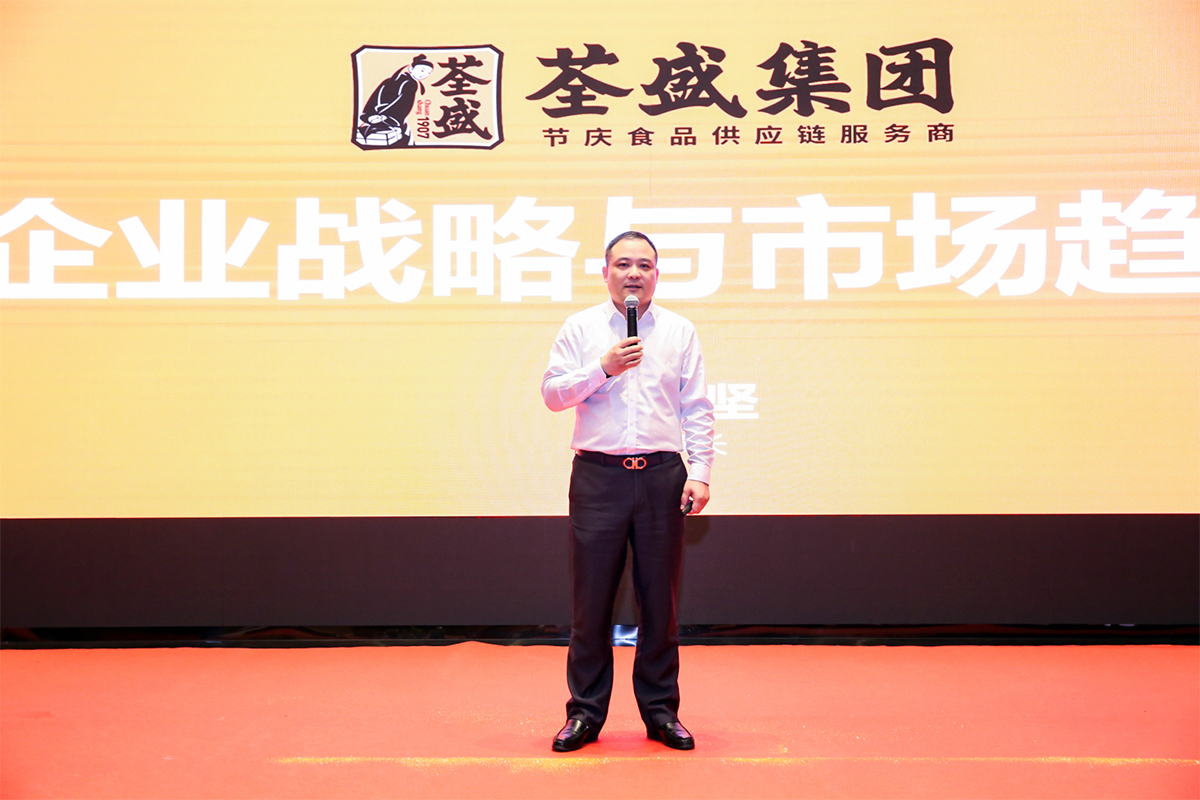 會(huì)議當(dāng)天,荃盛董事長(zhǎng)戴東堅(jiān)先生發(fā)表開(kāi)場(chǎng)致辭,并現(xiàn)場(chǎng)分享“荃盛企業(yè)戰(zhàn)略與市場(chǎng)趨勢(shì)”。作為全國(guó)粽子行業(yè)的標(biāo)桿企業(yè)之一,荃盛雖不是傳統(tǒng)老字號(hào),但一直以“產(chǎn)品有料好吃、創(chuàng)新迭代速度快” 著稱,年產(chǎn)量已超1.2億個(gè)。荃盛新開(kāi)發(fā)的黑松露上湯粽系列、大師藜麥鮑魚(yú)龍舟粽、烏米燕窩粽、高纖野米大肉龍舟粽等受到市場(chǎng)廣泛好評(píng),一經(jīng)上市可謂是一貨難求。