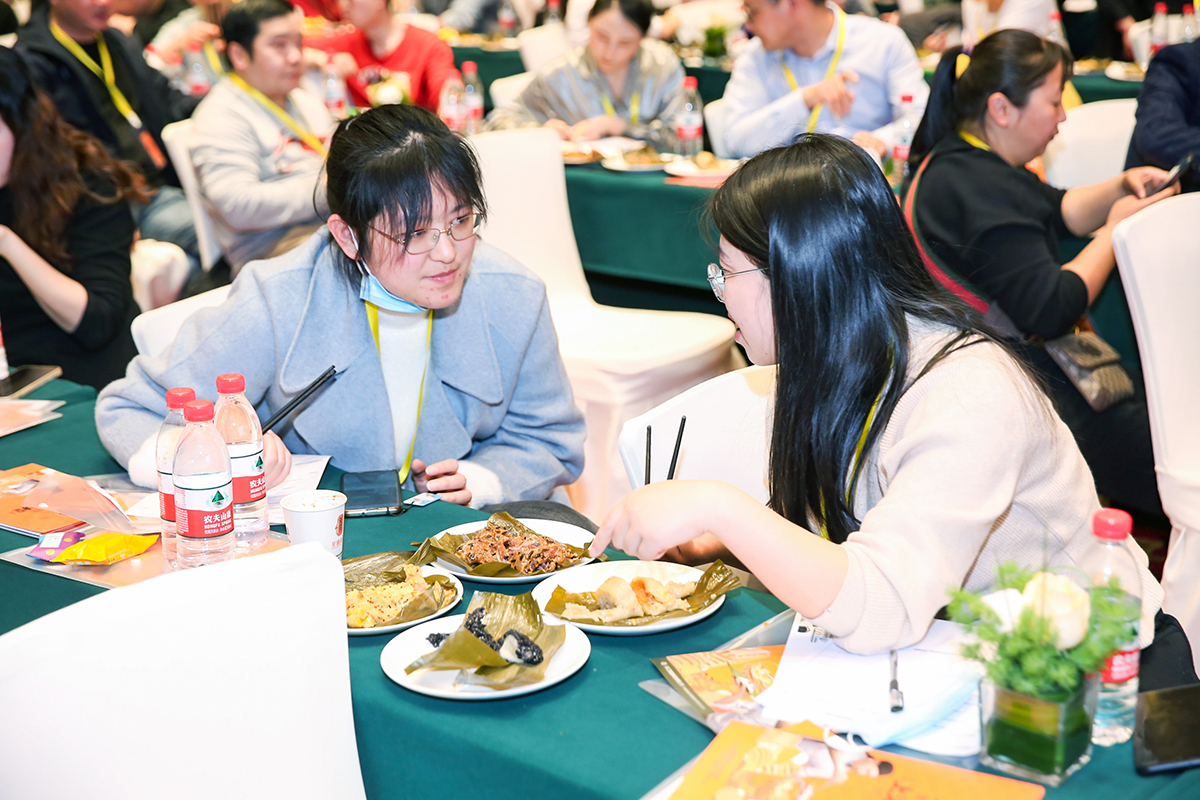 會(huì)議現(xiàn)場(chǎng)荃盛匠心代言人、研發(fā)總監(jiān)陳剛先生,介紹了“大骨上湯粽“研發(fā)全過(guò)程,上百次的調(diào)試,品類創(chuàng)新實(shí)屬不易。席間,荃盛為嘉賓們準(zhǔn)備了新品品鑒,有黑松露上湯黑豬肉龍舟粽、大師藜麥鮑魚(yú)龍舟粽子、高纖野米大肉龍舟粽、烏米燕窩粽、黃米蔓越莓優(yōu)格粽等嘉賓們爭(zhēng)先品嘗,紛紛對(duì)新品贊不絕口。