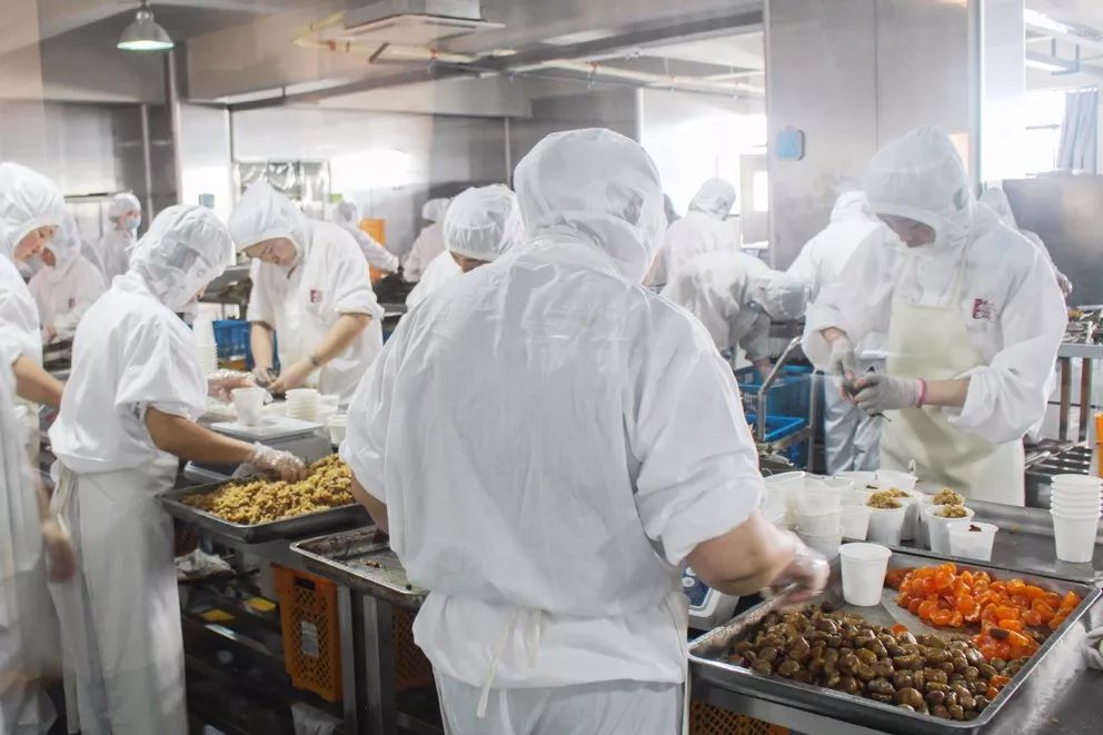 發布會開幕之前,由工作人員帶領合作商、品鑒者及媒體朋友從專門的觀光通道參觀工廠及透明GMP粽子車間,完全公開透明的向大家展示了荃盛粽子的生產過程。在參觀過程中,蒸鮮龍舟粽的手工制作環節格外引人注目,不少人對此提出疑問,去人工化的大趨勢下,為什么荃盛要加入手工制作,而不將生產線全部智能化呢?荃盛工作人員表示,蒸鮮龍舟粽是今年的主打產品,為了與其他品類粽子有明顯的差異,在改進原材料、制作工藝的基礎上,特意加入手工制作環節,使粽子更有“人情味”,保留傳統節日的氛圍與文化。
