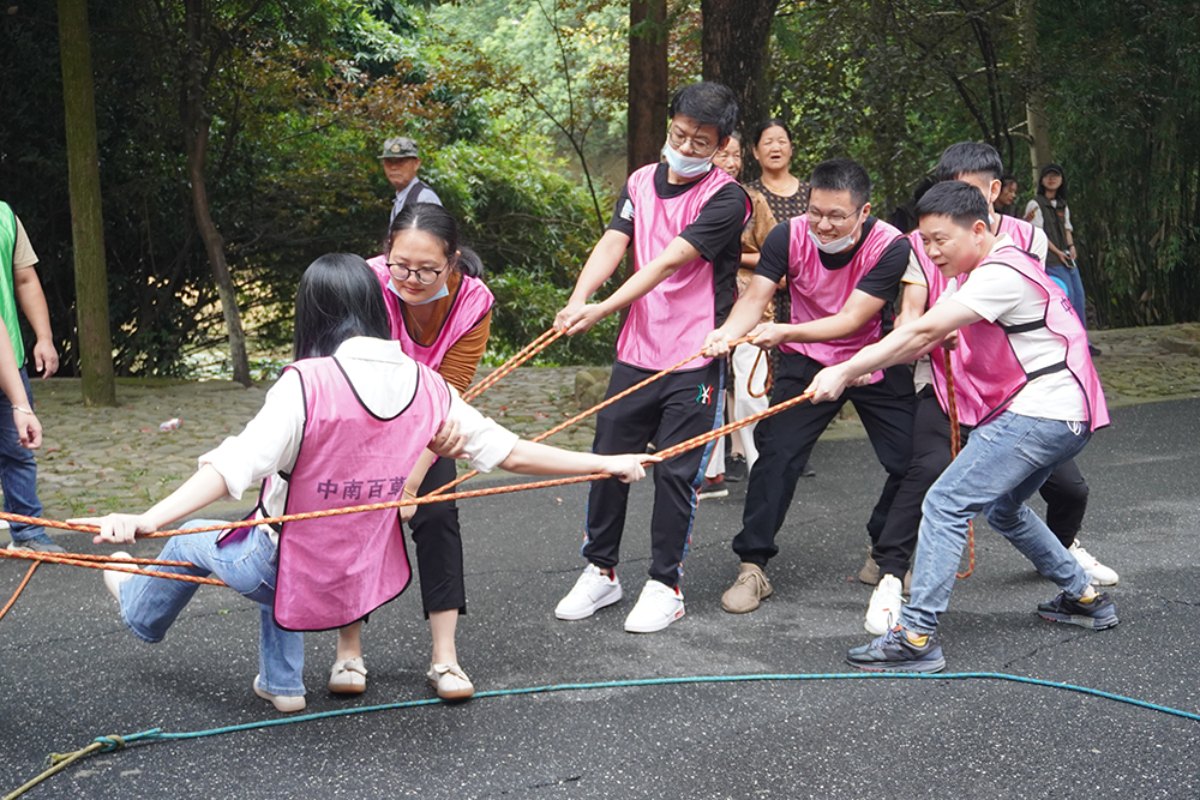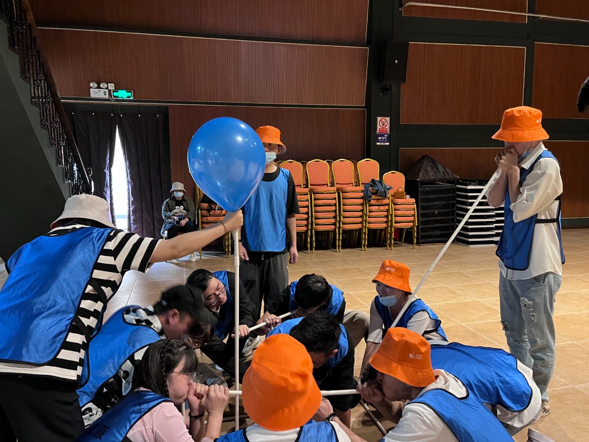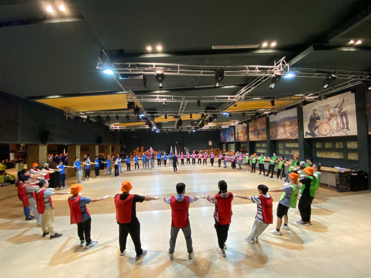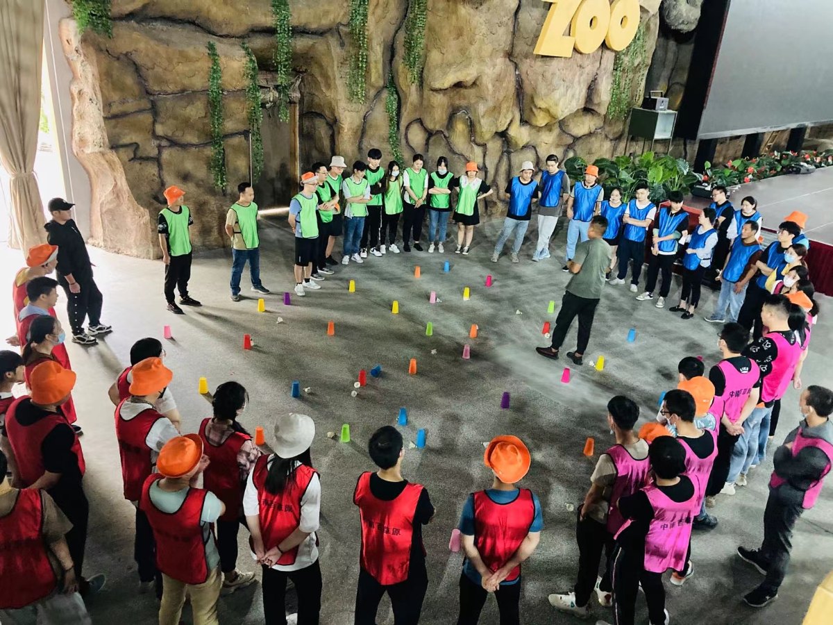 活動中,參加拓展的同事們打亂重組成多支隊伍后,開啟拓展模式。