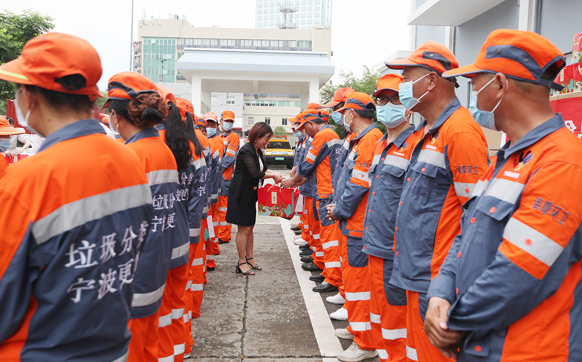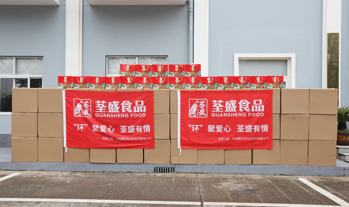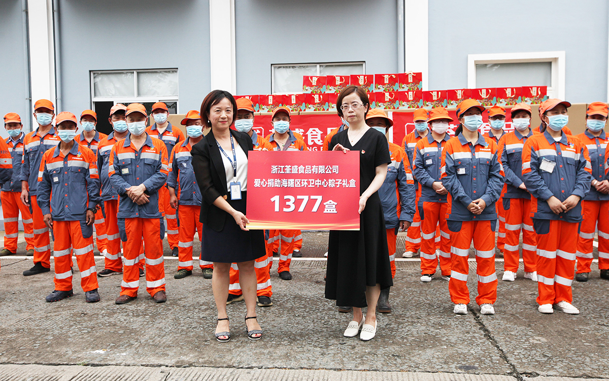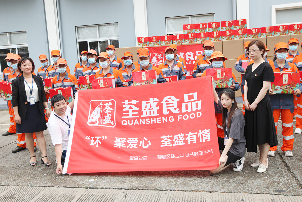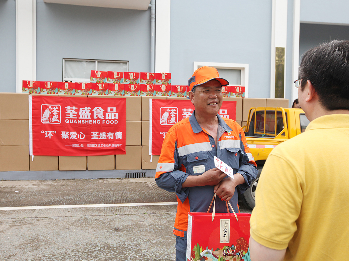 6月11日,浙江荃盛食品有限公司舉辦“環聚愛心 荃盛有情—與海曙環衛工人共度端午節”送關愛慰問活動,為寧波市海曙區1377名一線環衛工人送上荃盛粽子和端午祝福。