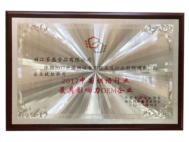 正式因為荃盛對傳統節日美食的專注,對傳播傳統文化的堅持,使其在行業內影響力逐步加深,今年四月,荃盛食品獲得“2017中國烘焙行業最具影響力OEM企業”稱號,這是對荃盛的肯定,也是對弘揚傳統文化這一行為的肯定。